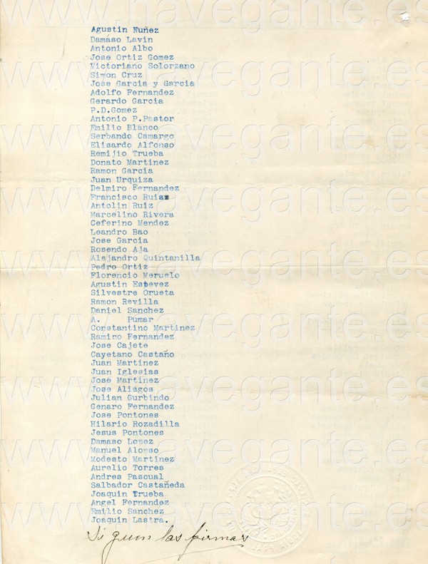 Se adjunta, además, con esta carta una lista de firmas de trabajadores que apoyan el escrito. Apellidos que muestran que una gran mayoría de ellos eran de Trasmiera, como, Lavín, Quintanilla, Meruelo, Solórzano…famosos canteros de la actual Cantabria. Lista en la que muchos podrán descubrir  a sus antepasados y conocer algo más de su historia. Entre ellos está la firma de Rosendo Aja Fernández, de la Cavada, quien, siguiendo su rastro en los archivos, es la causa del hallazgo de este documento (Diario de Navegantes: Los cántabros de la mina de Morenci, Arizona -Febrero 1-2021 y Rosendo Aja Septiembre 17-2020)